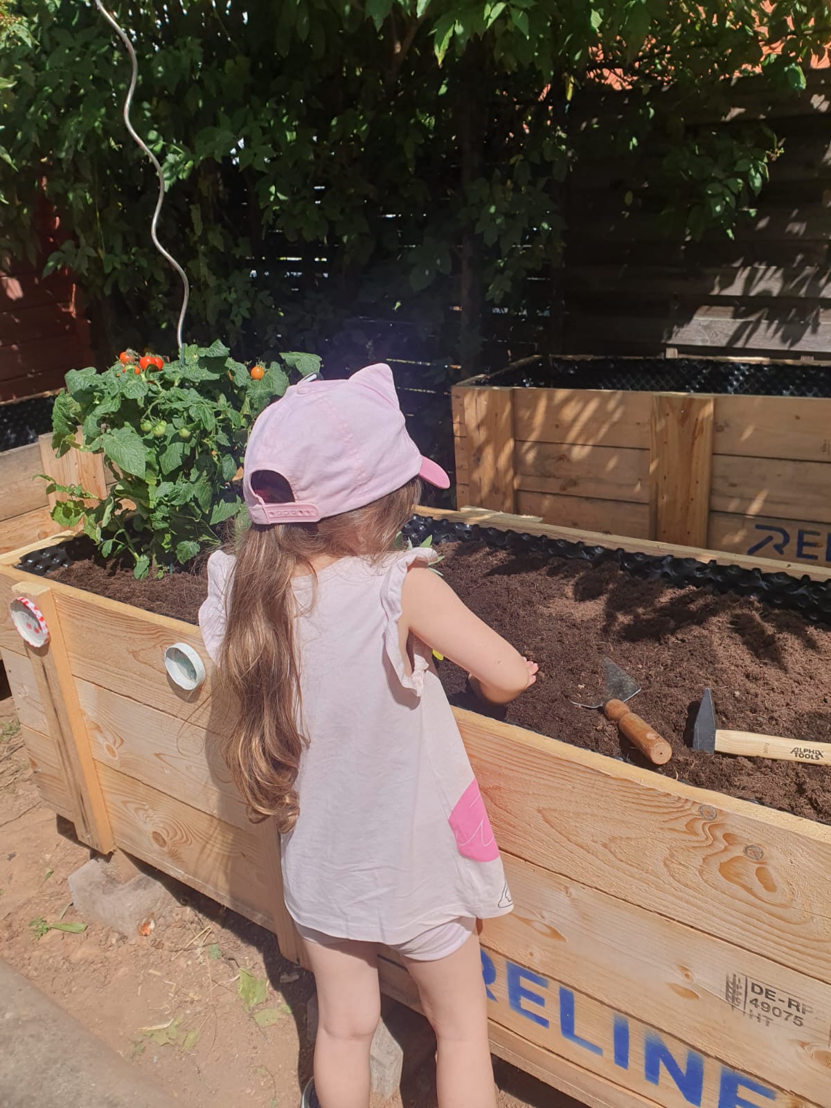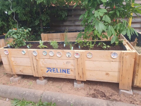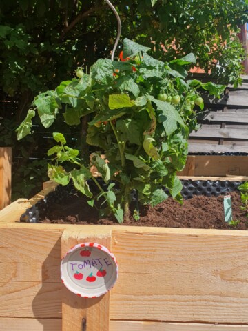 Die Kinder haben aus alten Deckel Schilder für die Pflanzen hergestellt…