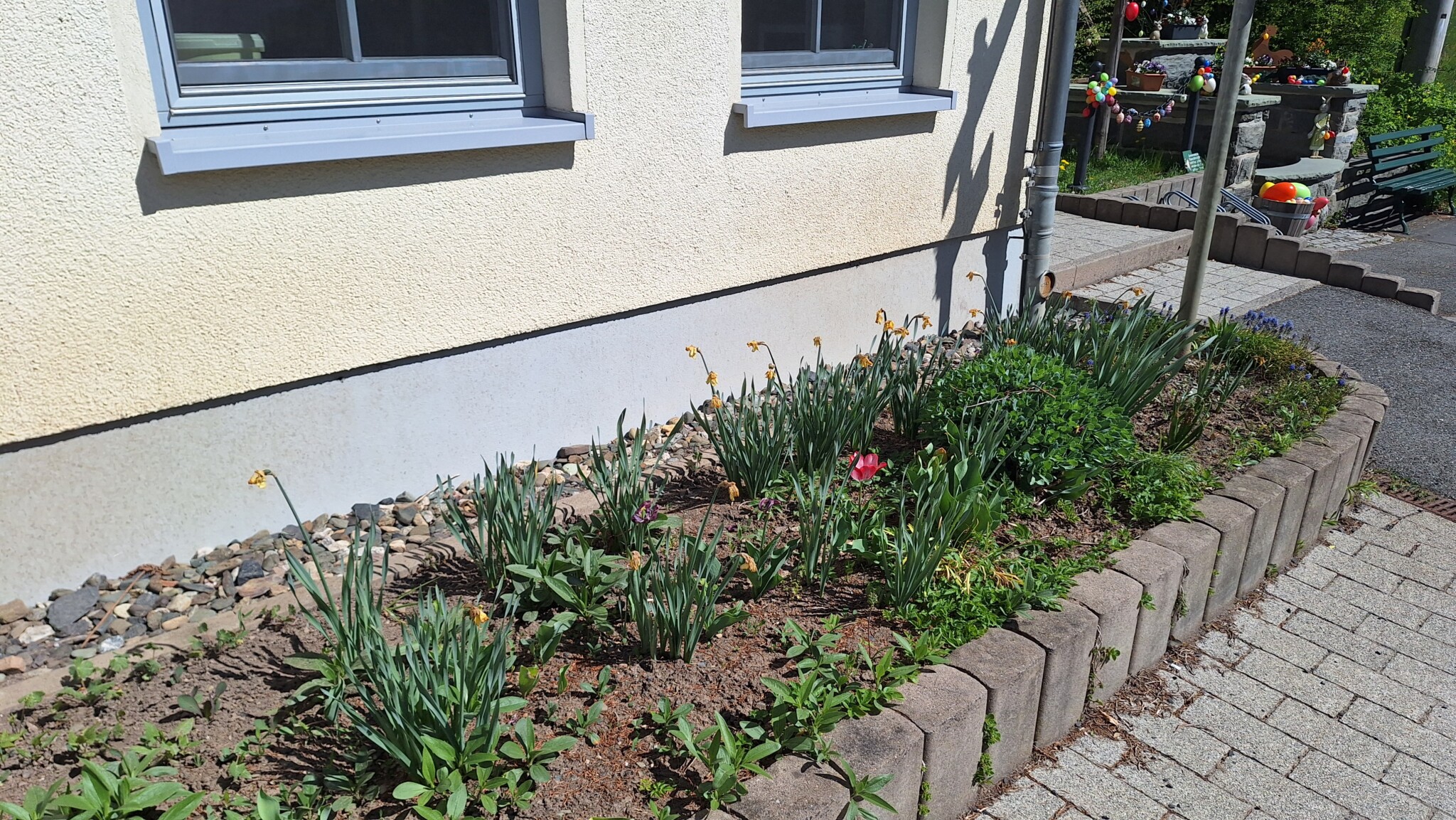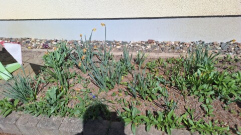 Das vorher Bild mit Unkraut und den Rest der Frühblüher
