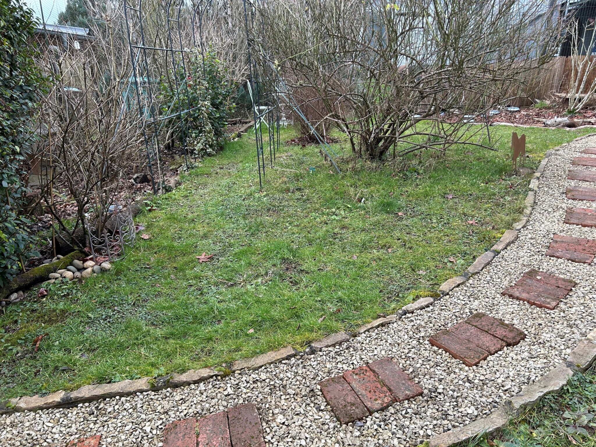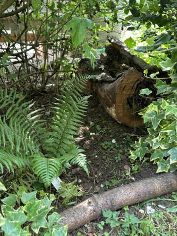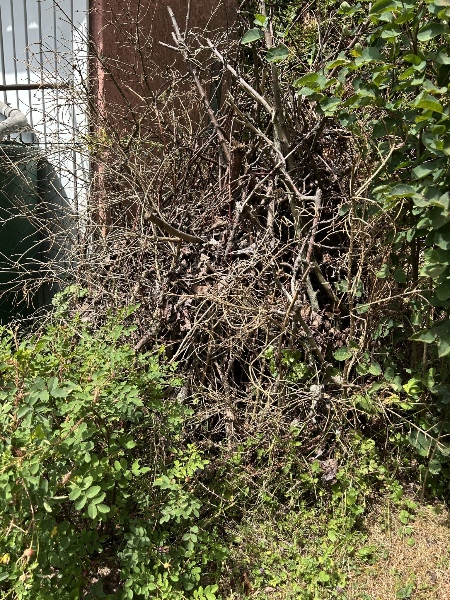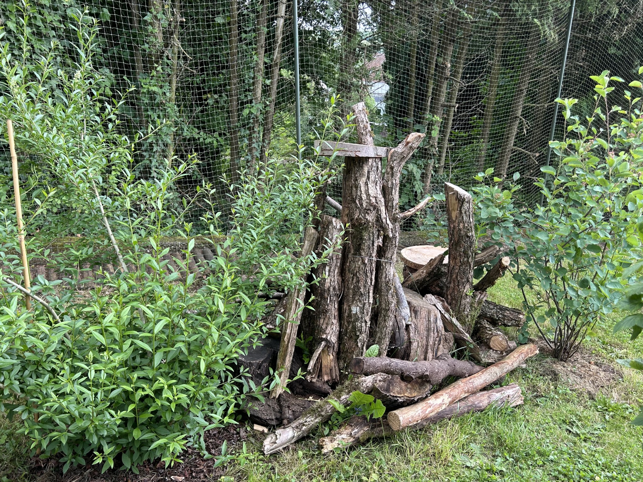 Zwischen einer Felsenbirne und einem Liguster hab ich dickere Äste von Weiden und anderen Laubbäumen als Totholzhaufen gelegt.