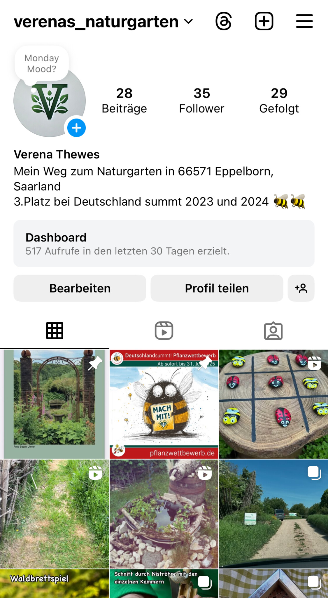 Interessierte zeige ich natürlich gerne meinen Garten und erkläre alles. Die Regionalgruppe vom Naturgartenverein war auch da gewesen und am Tag der offenen Gartentür hab ich dieses Jahr das erste Mal teilgenommen. Trotz schlechtem Wetter kamen viele vorbei. Seit Herbst hab ich auch ein Instagramprofil wo ich mein Tun poste.