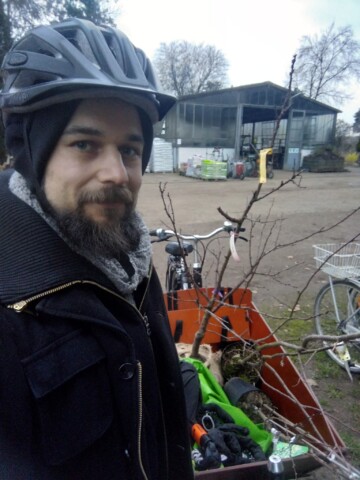 Einzelne neue Pflanzen transportieren wir per Lastenrad. Die meisten Pflanzen stammen aber aus eigener Anzucht.