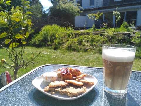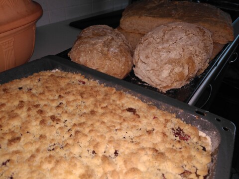 Mit selbstgeernteten Früchten backen wir Kuchen, von dem Stücke auch zu den Nachbarn wandern.