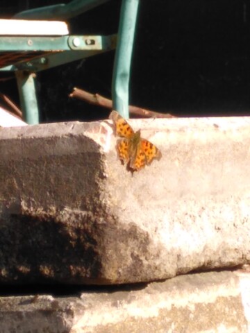 Der C-Falter wärmt sich auf.