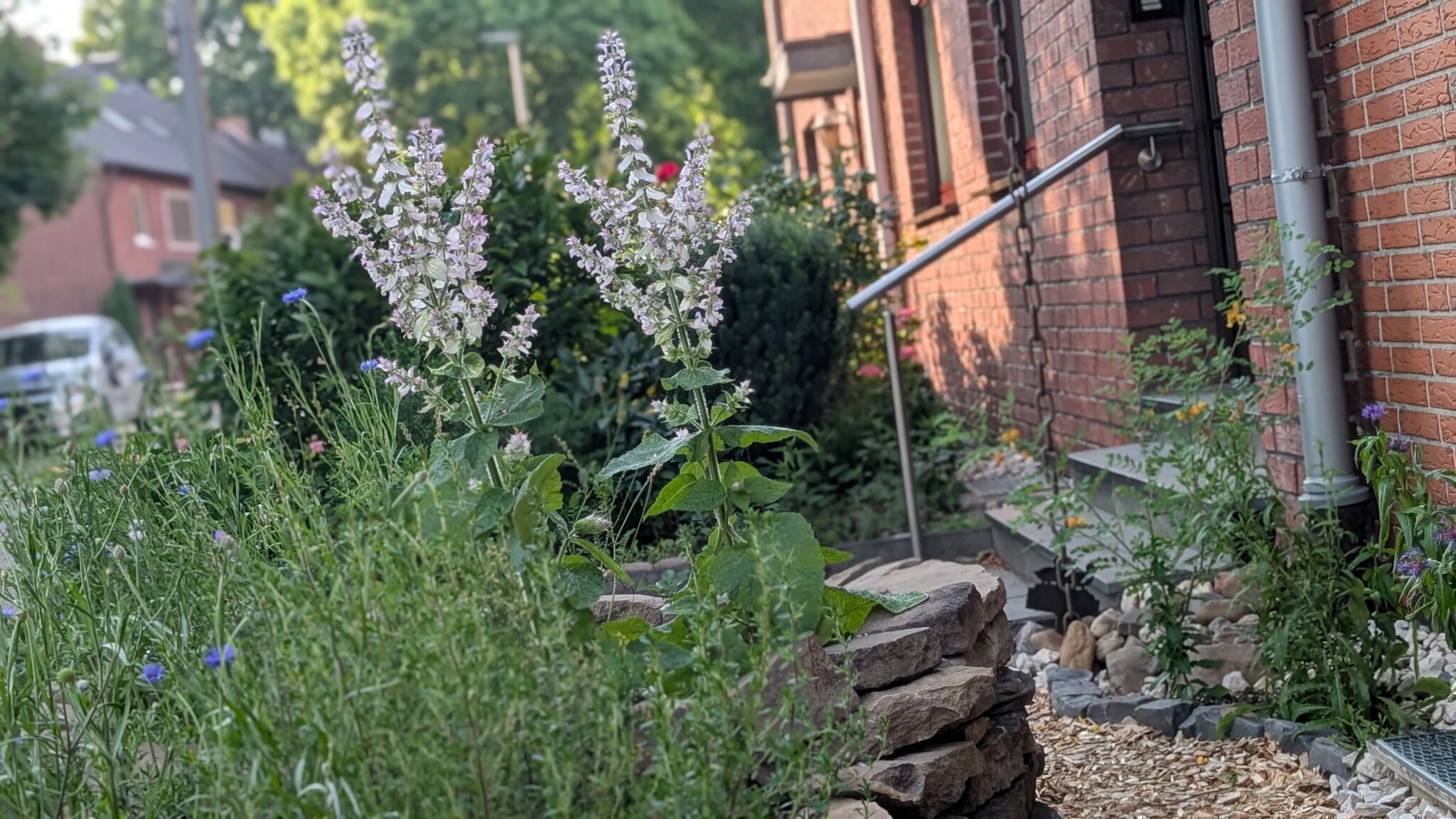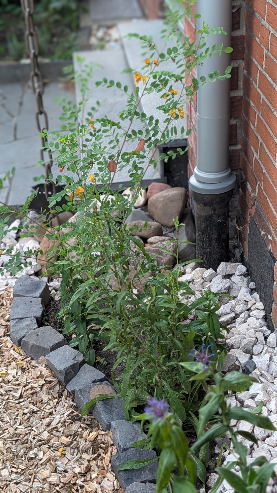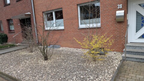 Schotter, Unkrautvlies und drei nicht heimische Gehölze prägen den Vorgarten