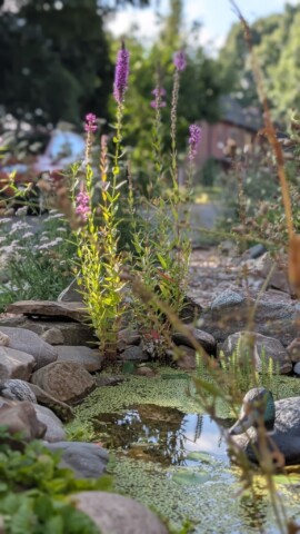 Der Teich zieht viele Wasserläufer, aber auch Vögel, Libellen und andere Insekten an