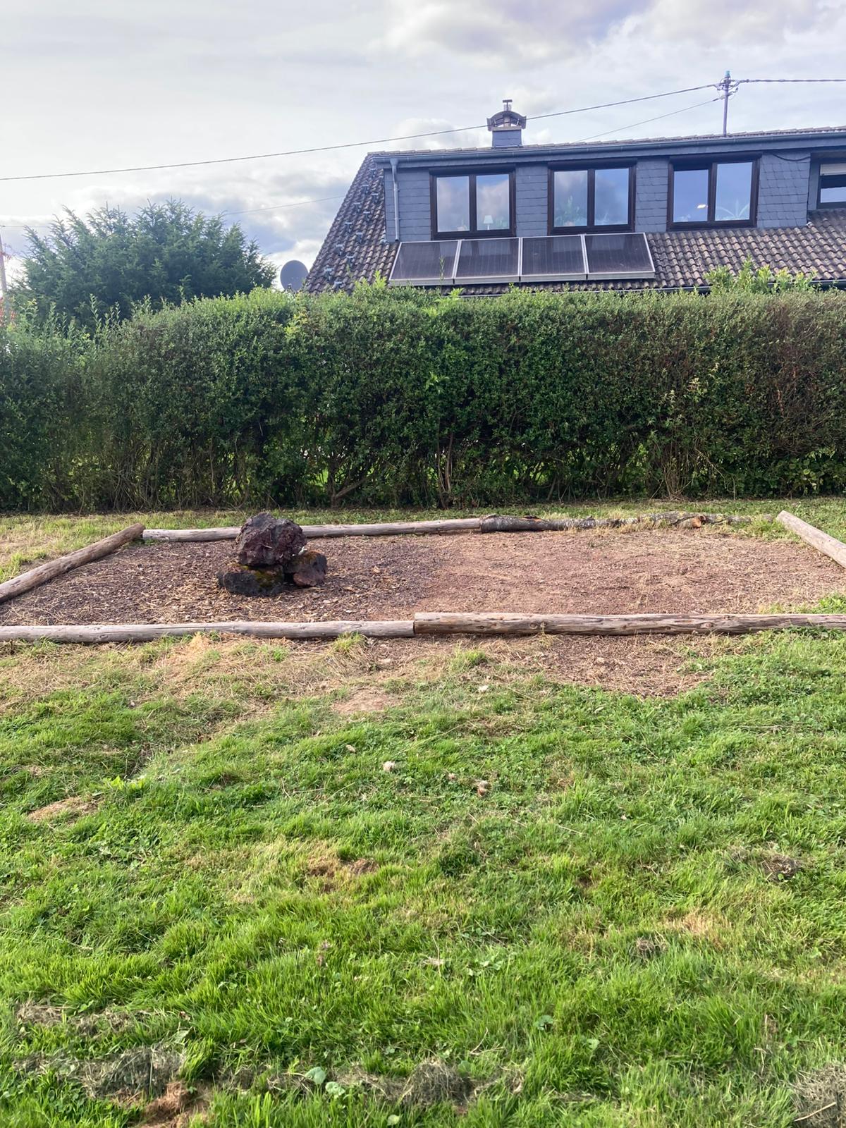 Ein ehemaliger Schuppen wurde abgerissen, was blieb war eine Fläche ca. 2,50mx5,5m. Unser Vermieter fragte uns, ob wir eine Idee für diese kleine Einöde hätten. Da der Garten von ca. 2000 qm viel naturnahe Fläche, mit Wildblumenwiese, Streuobst, vielseitigen Baumbestand (der einem Mikrowald ähnelt), sowie Vogelschutzgehölze zu bieten hat, fehlte ein magerer Standort. Perfekter Ausgangspunkt war da also die kleine Einöde die vom Schuppen übrig blieb.