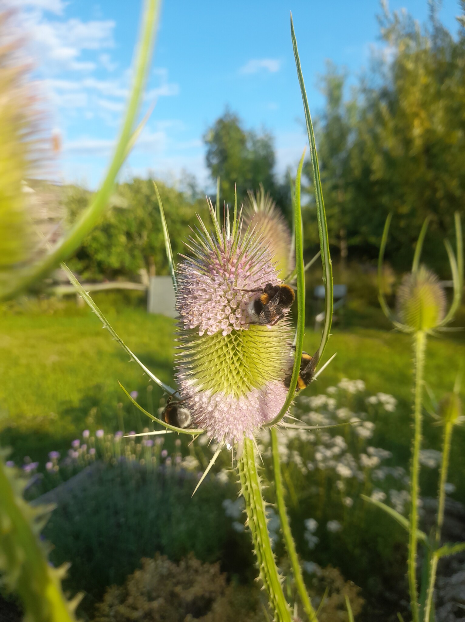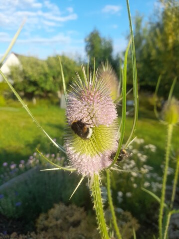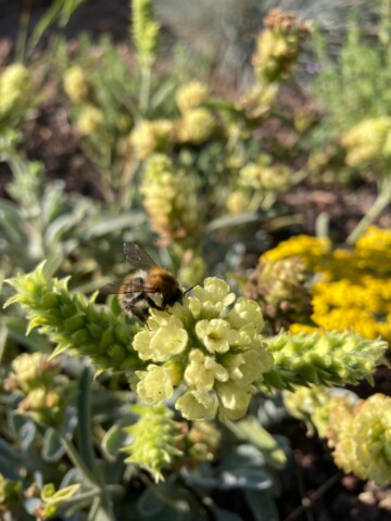 Da das Beet einen hohen Lavaanteil hat, ist das Unkraut jäten geringer. Wir besuchen unser Beet jeden Tag, da wir gerne beobachten und wenn etwas unerwünschtes überhand nimmt, wird es gezupft. Ein guter Effekt des Lava…keine Schneckenplage, deshalb keine Pflanzenausfälle durch Fraß. Gewässert wird einmal direkt bei der Planung mit ins Pflanzloch,fertig! Rückschnitt der Stauden ist für das Frühjahr geplant, damit das Beet auch im Winter ein Zufluchtsort für Insekten bleibt.
