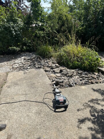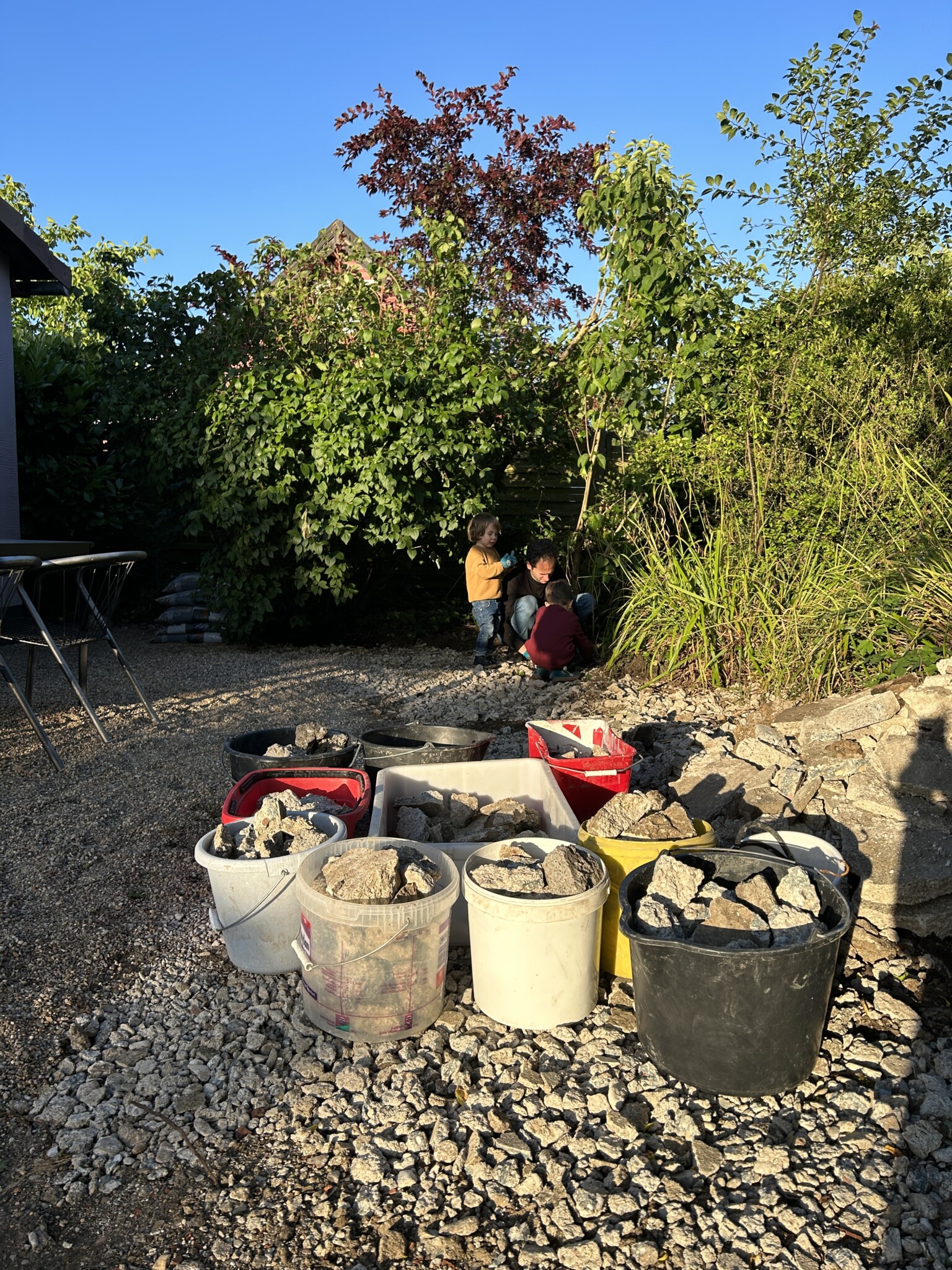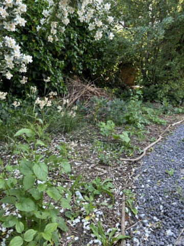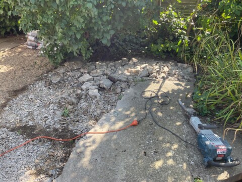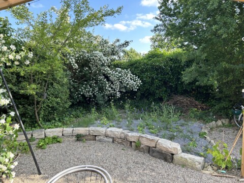 In unserem 450m großen Kleingarten hatten wir in große Betonfläche. Sie war hinten in der Ecke, nicht gleich sichtbar, und dennoch traurig anzusehen. Ende 2024 war es dann soweit: Mit Presslufthammer, Hammer und Spitzhacke haben wir uns den Beton vorgeknöpft. Auf der Fläche im sonnigen Teil haben wir ein Magerbeet mit heimischen Wildstauden angelegt und dafür einen Teil des Schutts verwendet. Im Schatten entstand ein weiteres Beet mit heimischen Pflanzen und Totholzstapel.