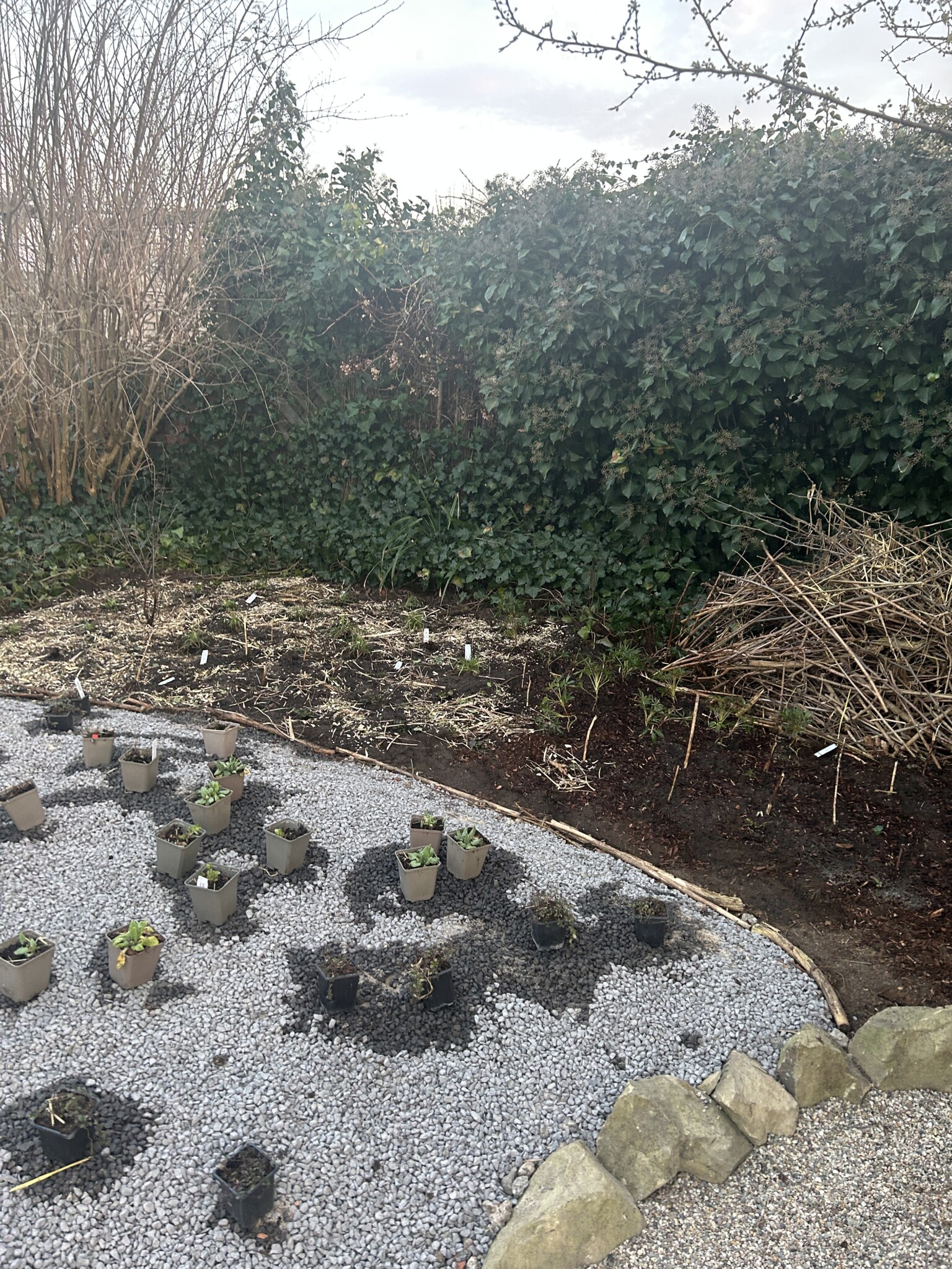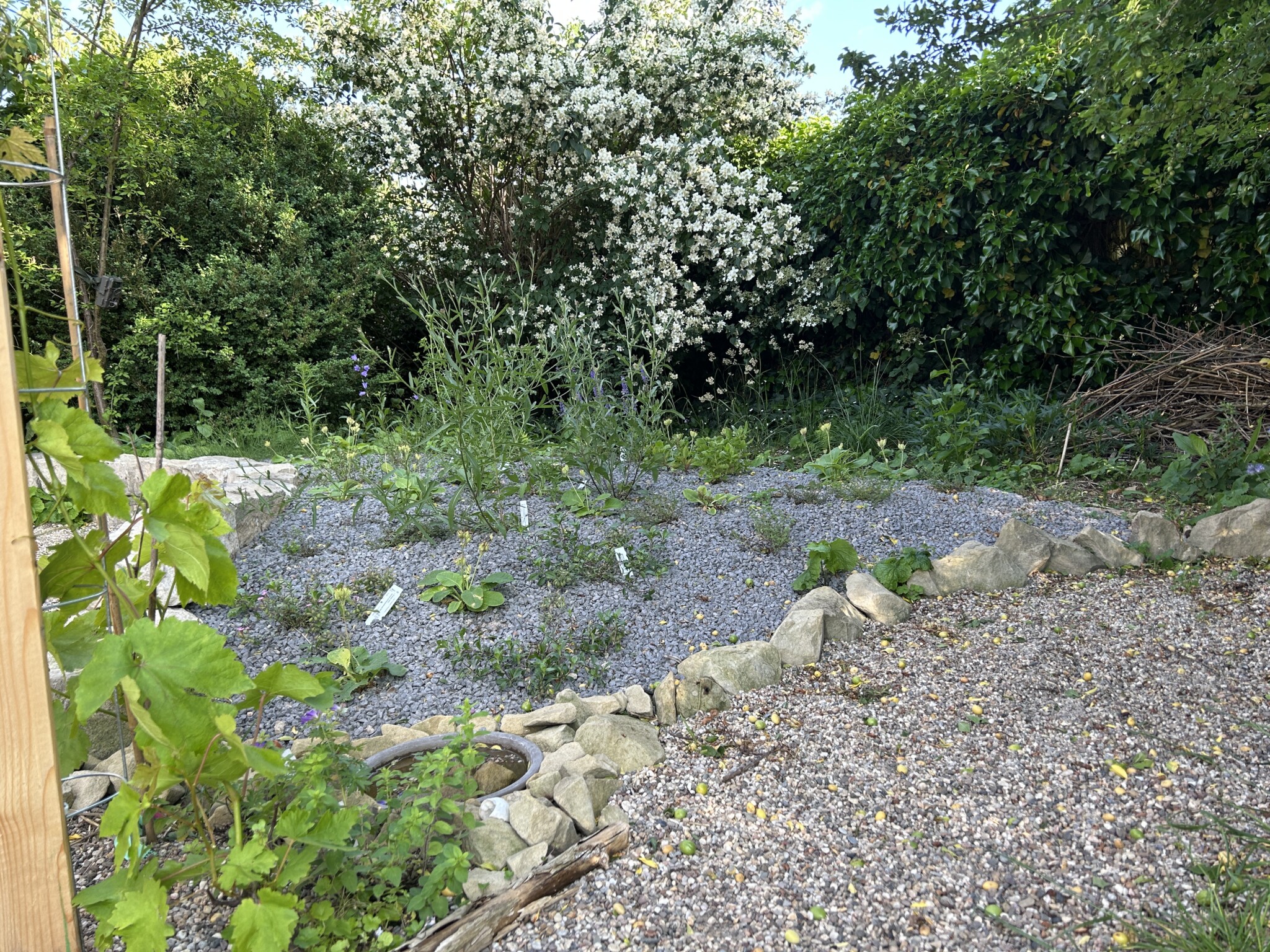 Alle Stauden sind gesetzt und der Totholzhaufen aufgestapelt.
