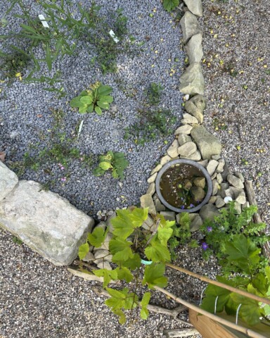 Zwischen Magerbeet, Trockenmauer und Pergola haben wir eine Insektentränke integriert.