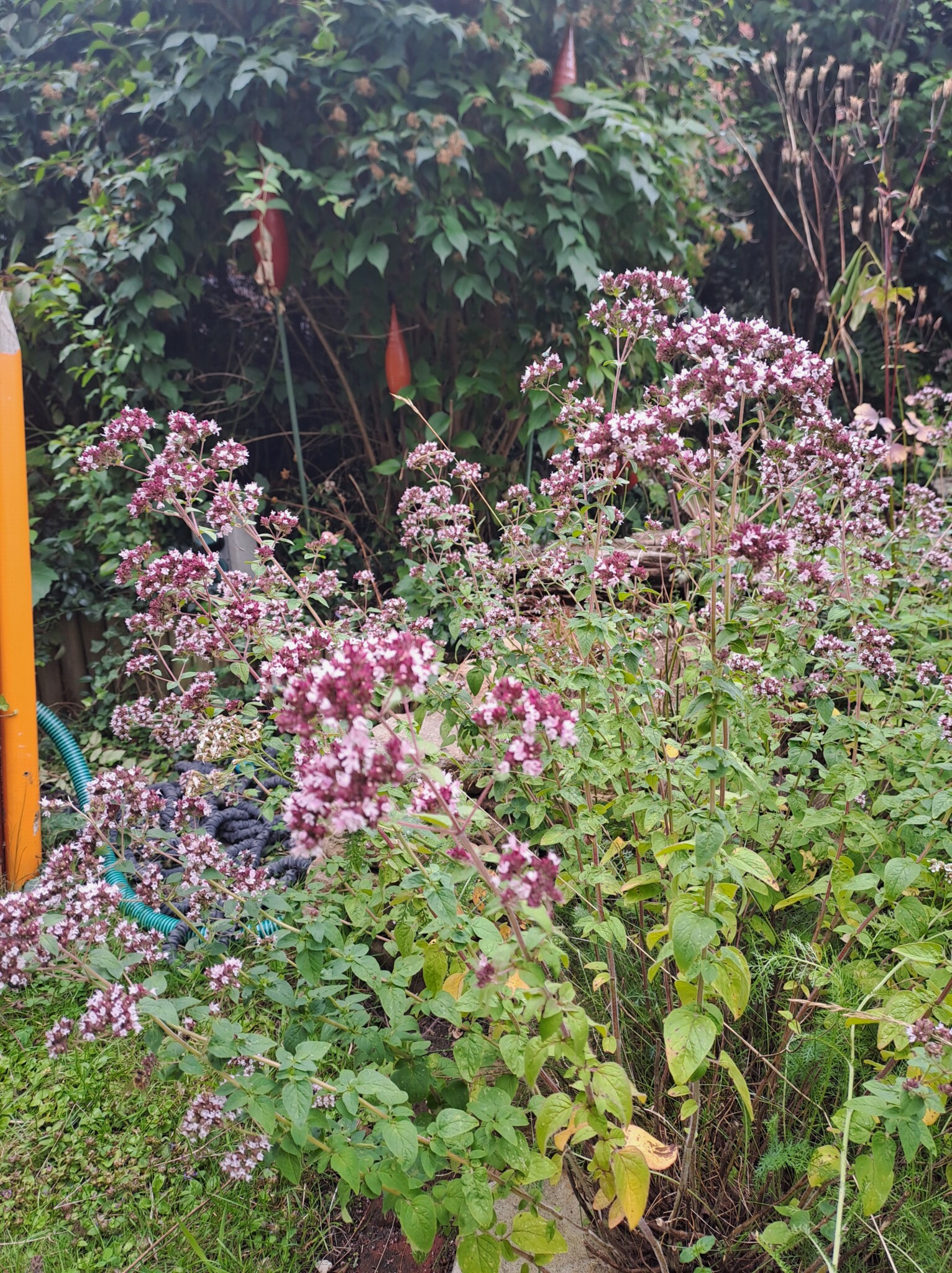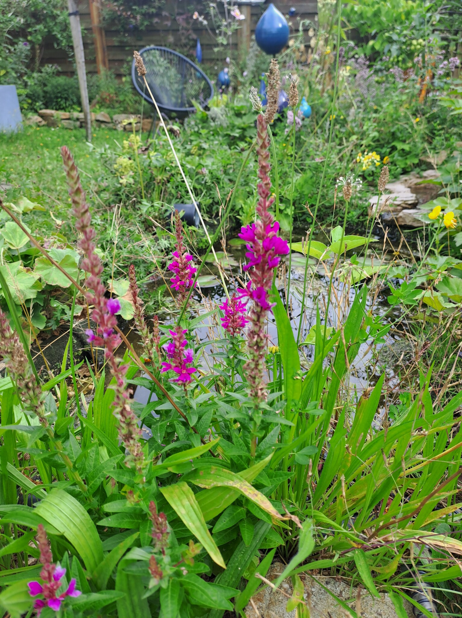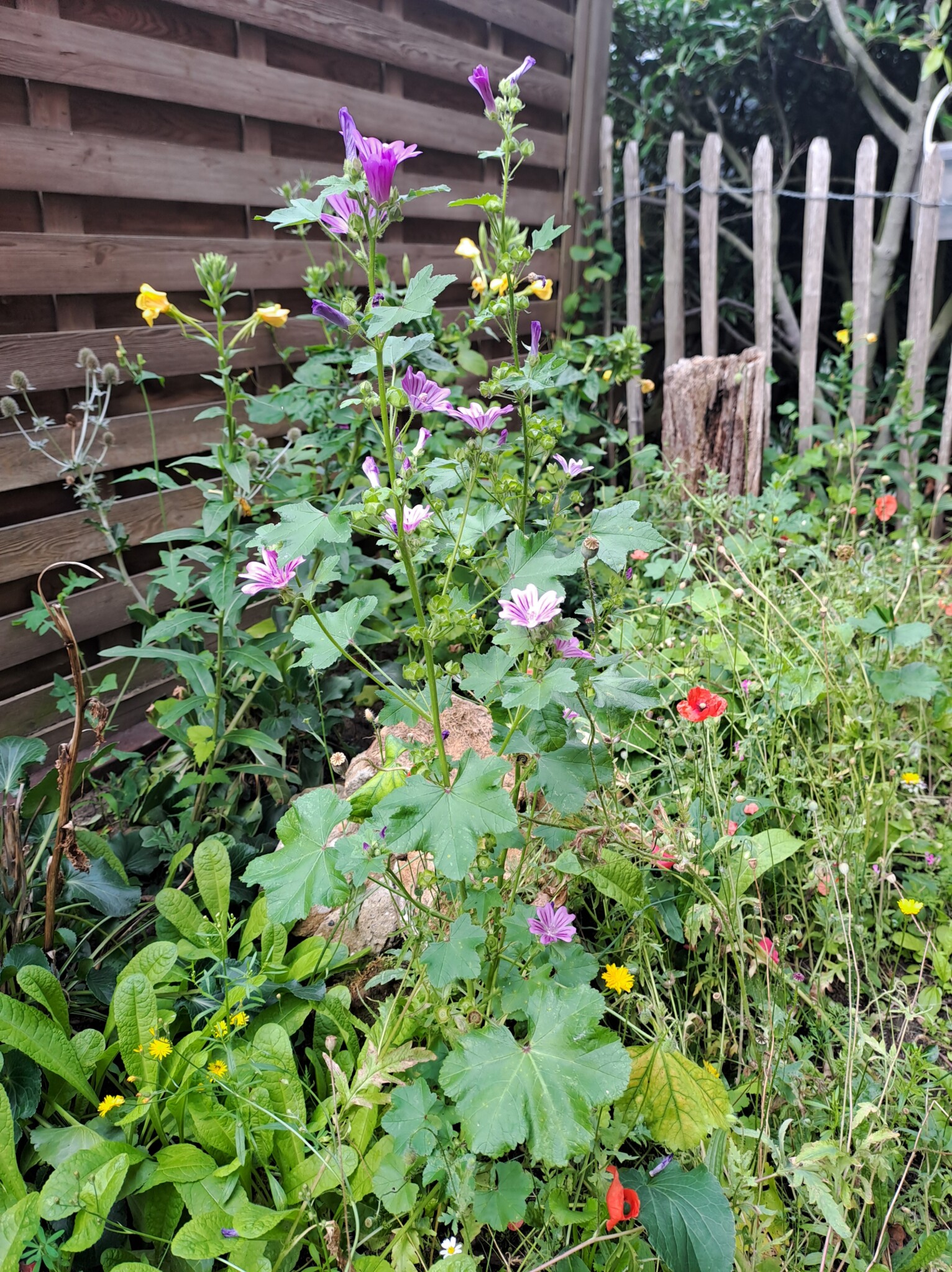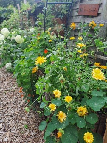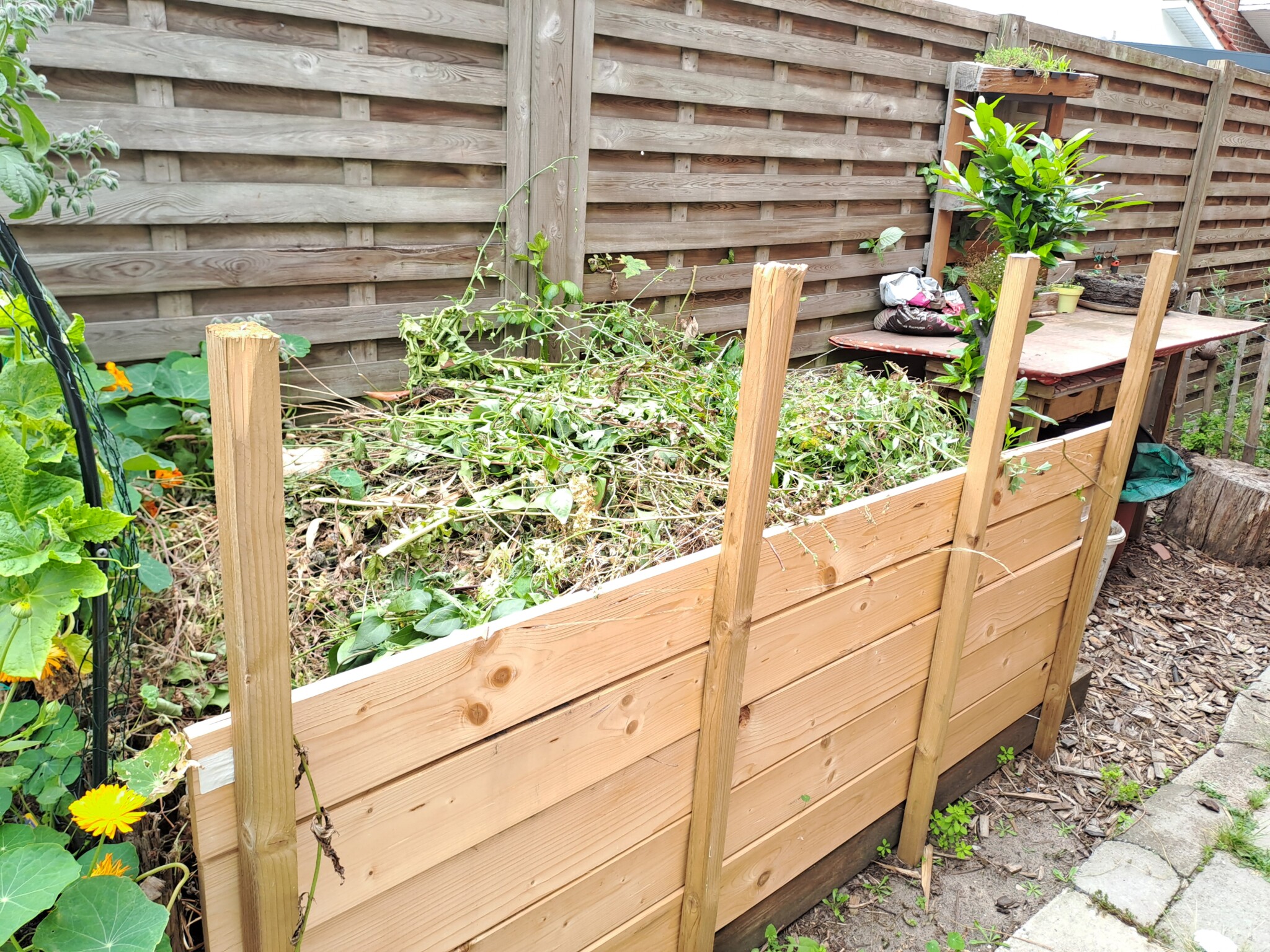 Der gesamte Garten ist ca. 100qm groß. Bei meinem Einzug gab es an der Grundstücksgrenze eine Kirschlorbeerhecke und davor eine Rasenfläche. Nach und nach haben wir in den letzten Jahren den Garten zu einem Naturgarten umgestaltet und mit insektenfreundlichen Gehölzen und Stauden bestückt. Auch ein Wildblumensaum entstand.