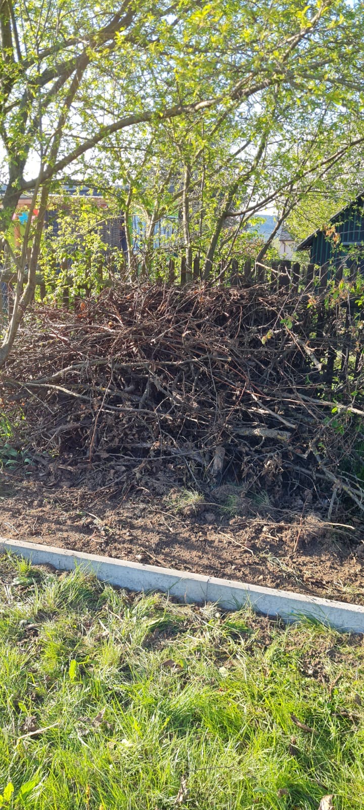 Totholzhaufen aus Obstbaumschnitt