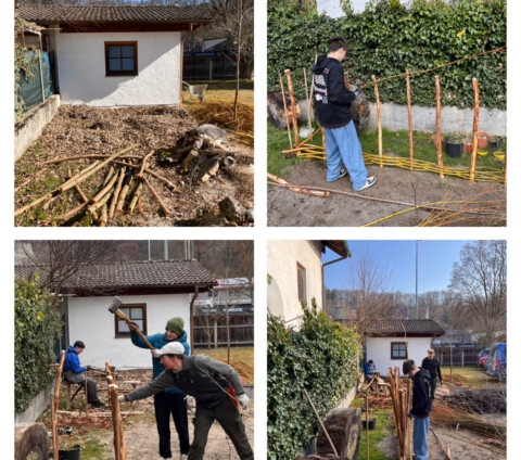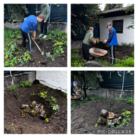 Arbeiten Rund um’s Jahr: Frühling: – Gemüsepflanzen vorziehen (Tomaten, Zucchini, Gurke, Kürbis) – Gemüsebeete bepflanzen – Beete am Lehrerparkplatz bepflanzen – Benjeshecke anlegen – Wildblumenwiese anlegen – Balkon bepflanzen – Vögel füttern – Stauden schneiden, Kräuterschnecke pflegen – Käferkeller bauen Sommer: – Gemüsebeete (ernten, gießen, mulchen, pflegen) – Johannisbeeren, Kirschen ernten – Vögel füttern Herbst: – Laub sammeln (Mulch Schicht für Gemüseacker) – Igelhäuser aufstellen – Werkarbeieten (Igelhäuser, Nisthilfen) – Teich pflegen (Blätter enfernen) – Vögel füttern – Rosen schneiden – Äpfel und anderes Obst ernten Winter: – Vögel füttern –> Teilnahme an den Projekt GemüseAckerdemie (Unterstützung durch Lernplattform im Internet und Acker-Coach) -> Rafael Dengler (Landschaftspfleger) Benjeshecke –> Gemüsebeete werden gepflegt von SVE, GTK 3 + 4, Garten-AG –> Blumenbeete werden gepflegt von OGTS, Garten-AG, Hausmeister –> Gartenteich und Balkon wird gepflegt von GTK 3