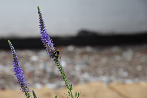 Tiere pflanzen – hier kam die erste Hummel bereits als der Ehrenpreis noch im Topf stand.