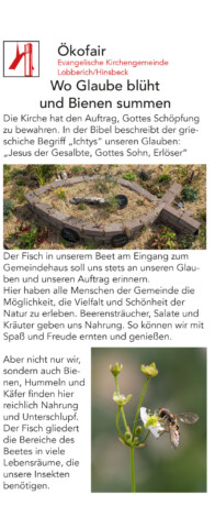 Durch die Umgestaltung des Eingangs des Gemeindehauses der Evangelischen Kirchengemeinde Lobberich bot sich die wunderbare Gelegenheit, den Besuchern das Thema naturnahes Gärtnern näherzubringen.