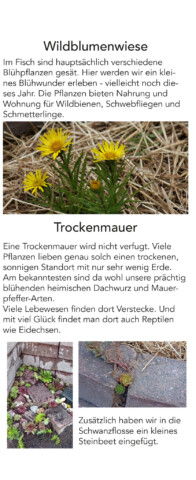 Hier werden die Wildblumenwiese und die Tockenmauer beschrieben.