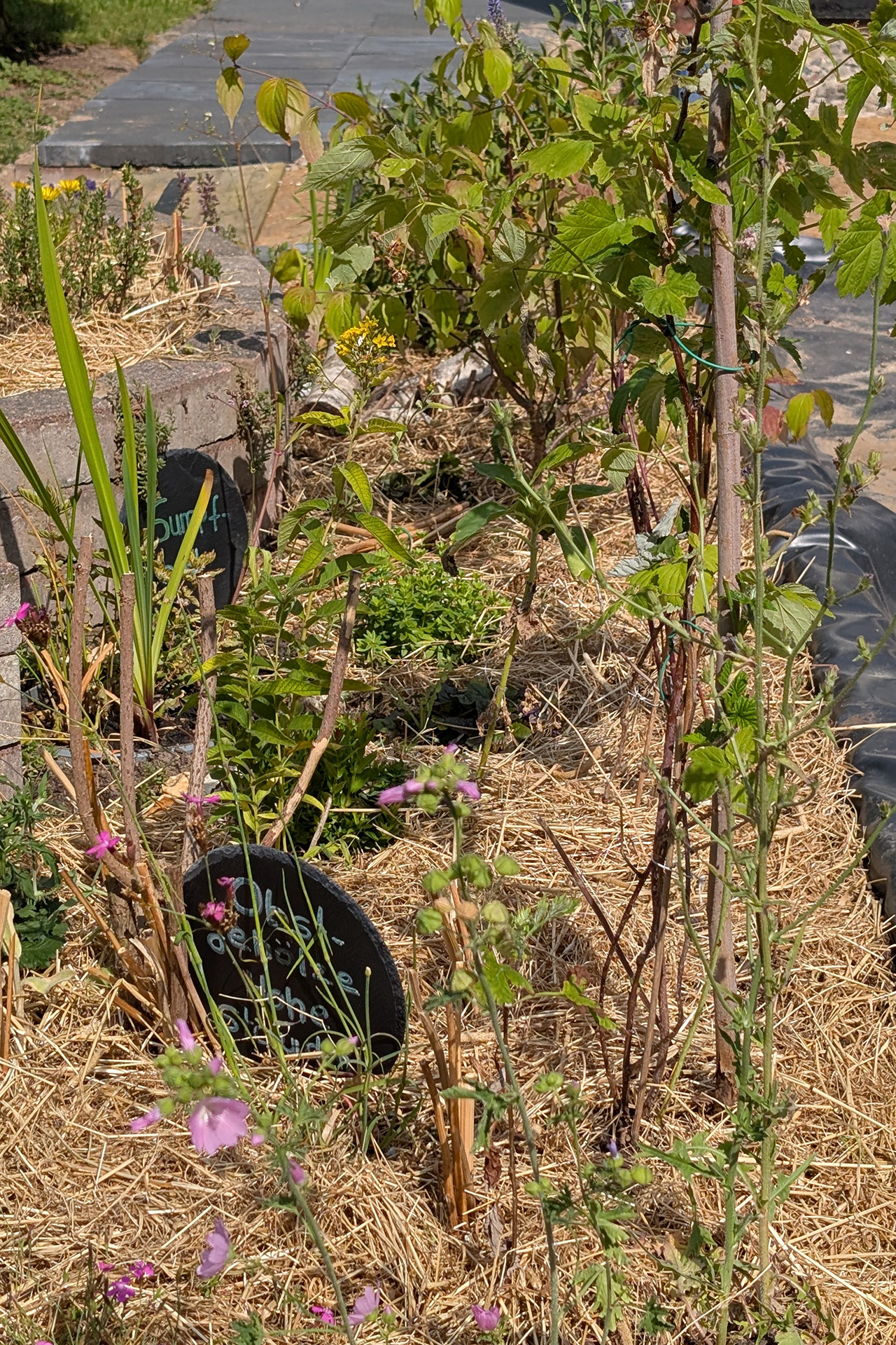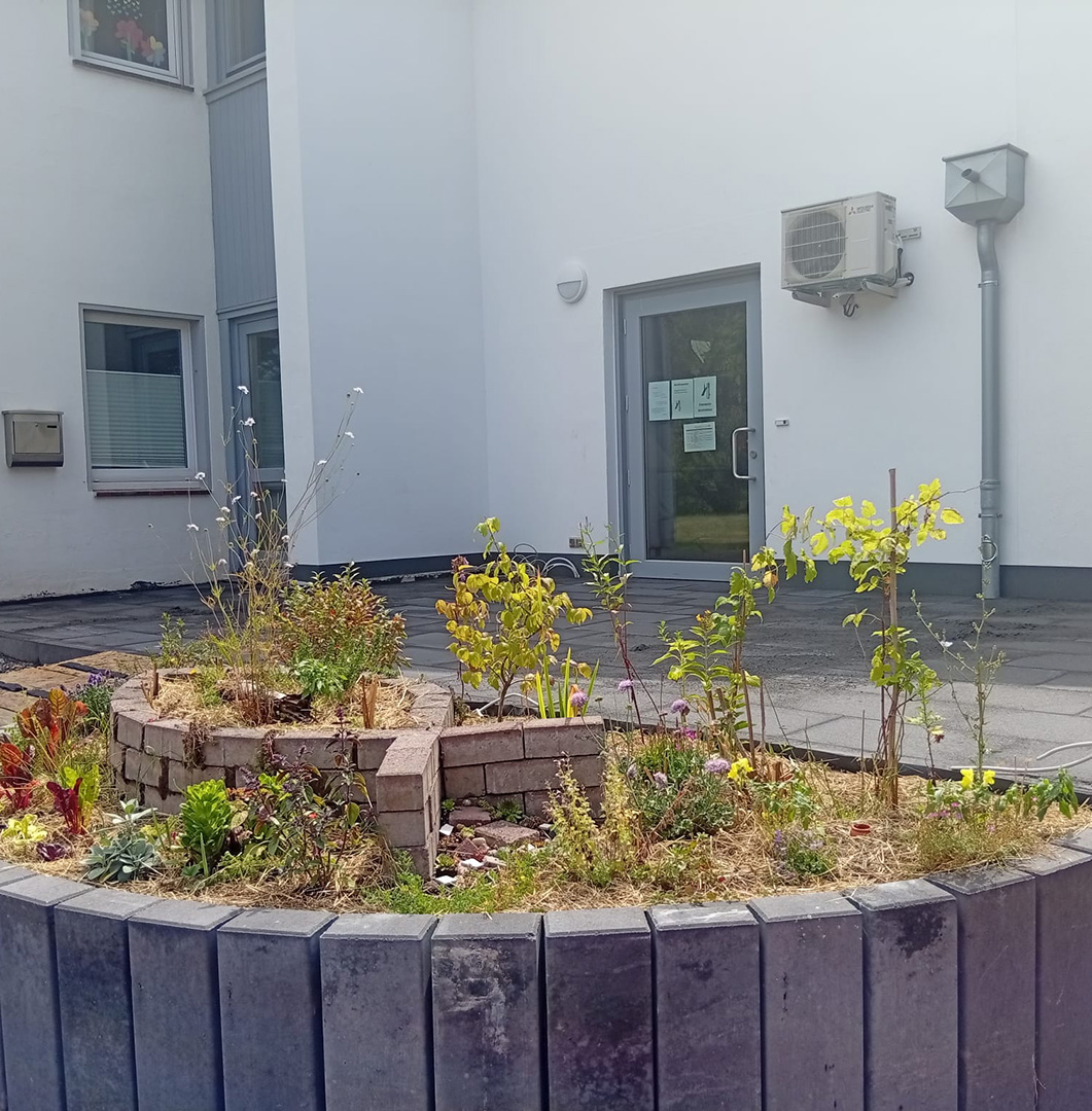Zusätzlich wurden bei der Planung und Umsetzung auch ressourcenschonende Aspekte berücksichtigt, zum Beispiel durch Upcycling und den Einsatz von Ollas und Mulch.