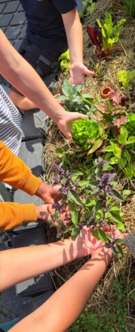 Ein wichtiger Aspekt – gerade auch für die Kinder – war zu zeigen, wo unser Gemüse herkommt. Wir haben darauf geachtet, Mischkulturen zu pflanzen, um eine möglichst große Vielfalt zu präsentieren. Zusätzlich sind alle Pflanzen auch für kleine Flächen auf Balkone geeignet.