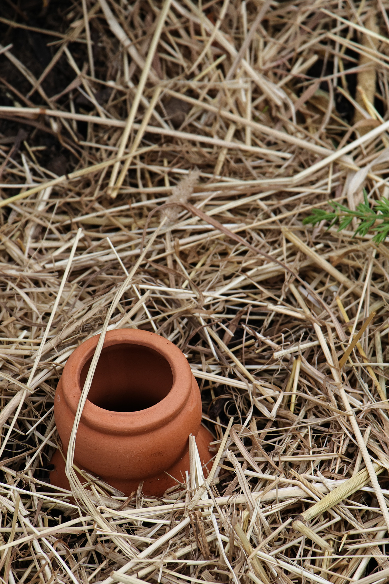 In das Beet wurden mehrere Heuschichten eingebaut. Das Heu dient als Wasserspeicher und es beugt der Verdichtung des Bodens vor. Der Luft und Wasseraustausch wird dadurch verbessert. Es dient auch der Bodenverbesserung.