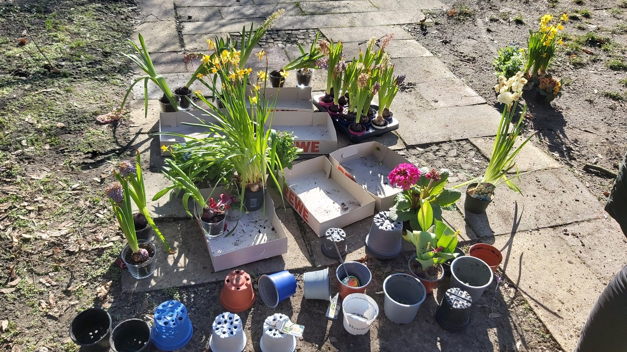 Wir sammelten im Kollegen- und Freundeskreis auch abgeblühte Frühjahrsblüher und pflanzten diese in unsere Freilandbeete aus.