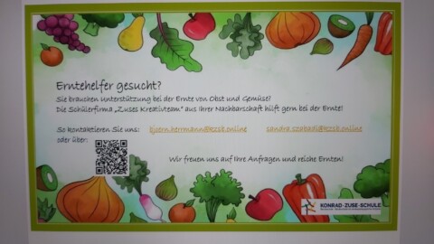 Bei Zuses Kreativteam dreht sich alles um die nachhaltige Nutzung unseres Projektschulgartens , regionale Snacks, die daraus entstehen– und um unsere liebsten kleinen Helfer: die Bienen! Im Schulgarten und auf den angrenzenden Flächen der Nachbargrundschule schaffen wir dafür die Voraussetzungen mit bienenfreundlicher Aussaat auf Freiflächen und bienenfreundlichen Kulturen auf den Bodenbeeten und in den Hochbeeten. Wir engagieren uns aktiv gegen das Bienensterben – mit Vorträgen, eigenen Bienenvölkern und wir haben 1.000 bienenfreundliche Saatkugeln in der Nachbarschaft unserer Bienenvölker verteilt, um neue Blühflächen zu schaffen und Lebensräume zu schützen. Aktuell haben sich zwei Wildbienenvölker bei uns im Mauerwerk angesiedelt, die wir natürlich in ihrer Nahrungssuche unterstützen wollen.